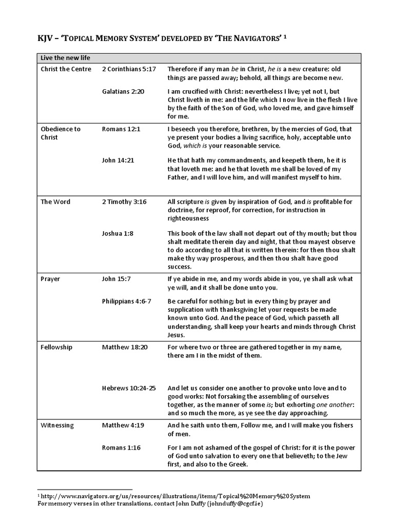 Navigators Topical Memory scriptures. A LIVE THE NEW LIFE. Get Free Topical Memory System Textbook and unlimited access to our library by created an account. I had to read the book twice. It is no longer I who live but Christ who lives in me. If you want to memorize Scripture but arent sure what to memorize or how this system is exactly what you need to begin hiding Gods word in your heart. Scripture memory is a powerful tool for renewing your mind to your inheritance in Christ.