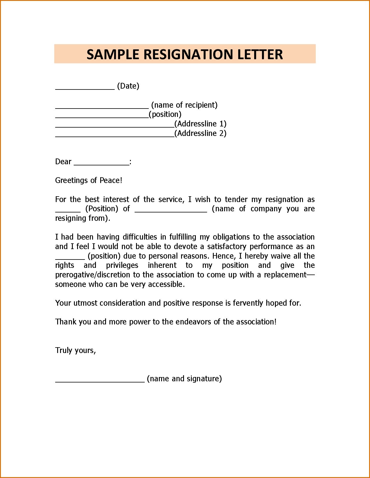 Resignation Letter Format Sample.